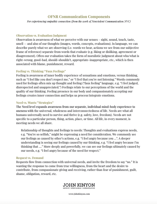 (See also OFNR: Observation, Feelings, Needs & Requests.)