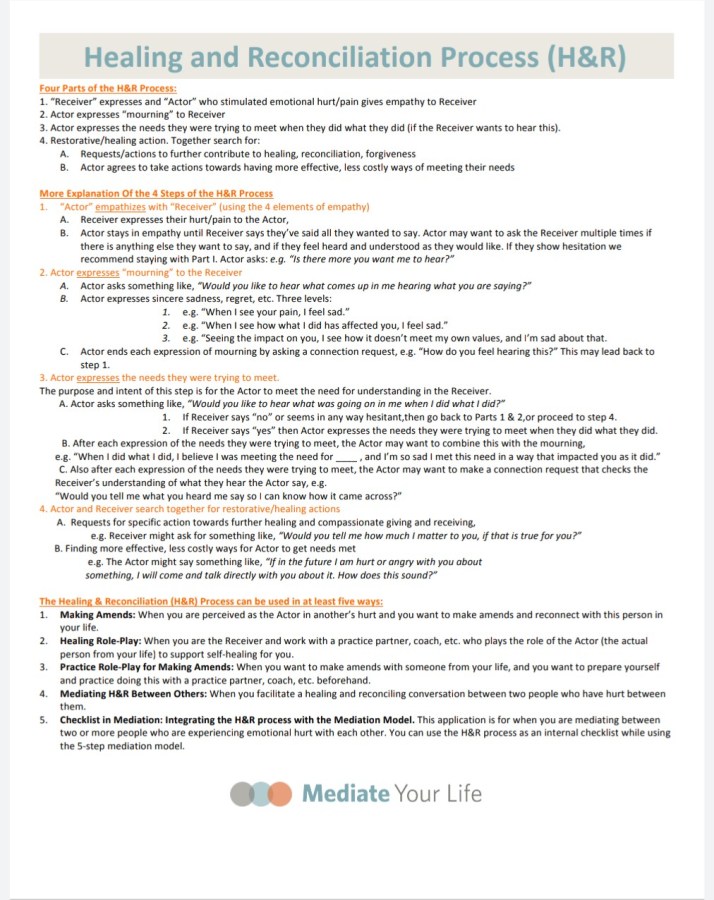 Healing & Reconciliation Process (via mediateyourlife.com/handouts)