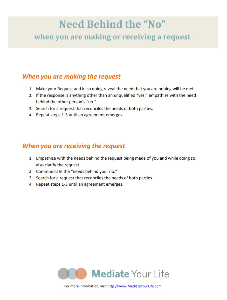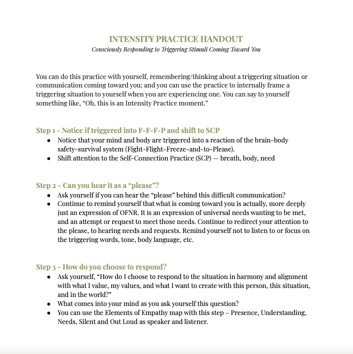 (See also OFNR: Observation, Feelings, Needs & Requests.)
