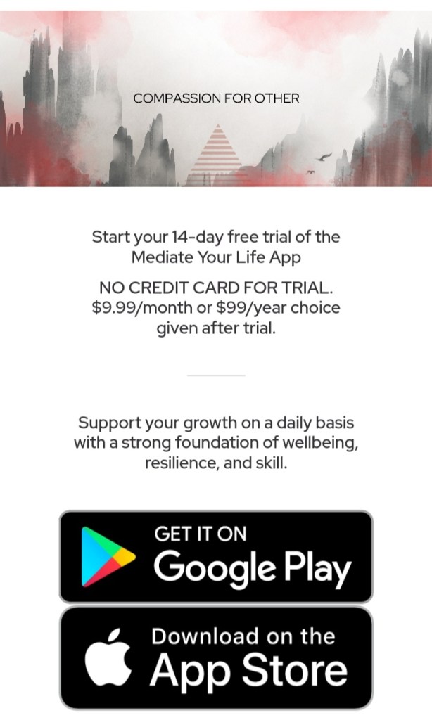 The Mediate Your Life app is free and available to everyone who wants it.